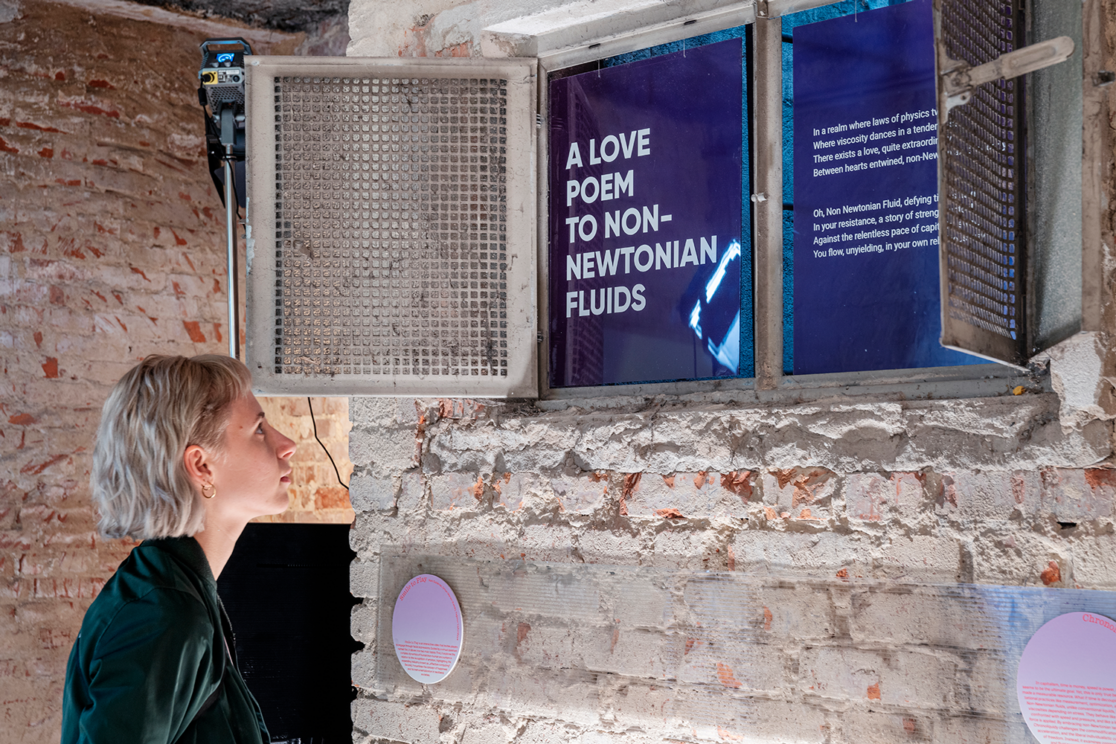 Non-Newtonian fluids, unlike conventional liquids, have variable viscosities depending on stress. They behave like solids when confronted with speed and pressure, and like a liquid if less force is applied. By embracing non-Newtonian temporalities, Chronoliquidy challenges the commodification of time, acceleration, and the liberal individualistic concept of freedom. Instead, it examines connected and fluid temporalities, reimagining new ways of collectivity.